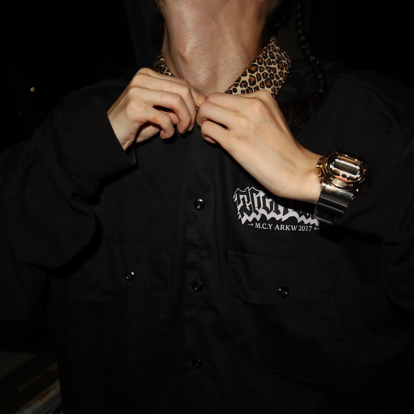 ディッキーズUS規格1574シャツ採用。雨避け(スコッチガード)付きでしっかりとした8.5オンスのTCツイル生地は、タフで汚れずらく綺麗なシルエットを保ちます。シャツ左胸にシルクスクリーンプリント。上襟、後ろポケットにレオパード生地を上から縫製しました。