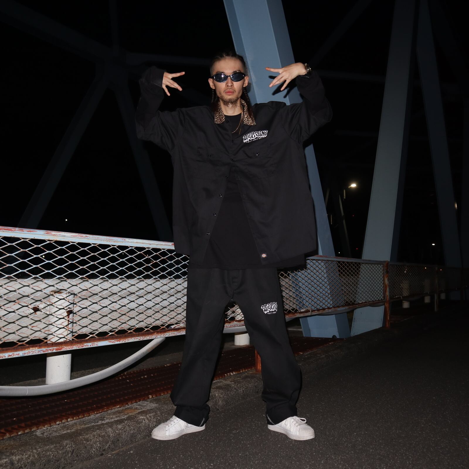 【LUCK END CREW リーダー"十影"プロデュース・セットアップ】US DICKIESボディを採用したセットアップ。ディッキーズICONカラーの"KHAKI & BLACK" に加え、"CHARCOAL & DARK NAVY"をプラスした4色展開。シルクスクリーンプリント、レオパード生地などのカスタマイズは、THE 17VINEデザイナー本人の拘りハンドメイド。ヒップホップシーンに欠かせないディッキーズ・セットアップ。オールシーズン存在感抜群のコラボアイテム。